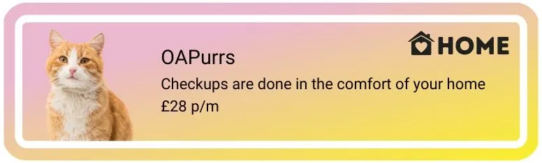 In addition we recommend getting insurance for your cat – there are many out there that can cater to everybody’s needs and the key is to find one that covers for life. Insurance covers the unexpected accidents or illnesses. Our membership can cover everything else that an insurance company won’t cover – home visit charges, health checks + vaccines, prescription charges for online medications, worming treatment and more. Our memberships split the costs into a manageable monthly fee and when combined with a good pet insurance means you can avoid any unexpected big vet bill and budget the exact amount you need each month to care for your cat - which is less stress for everyone involved.